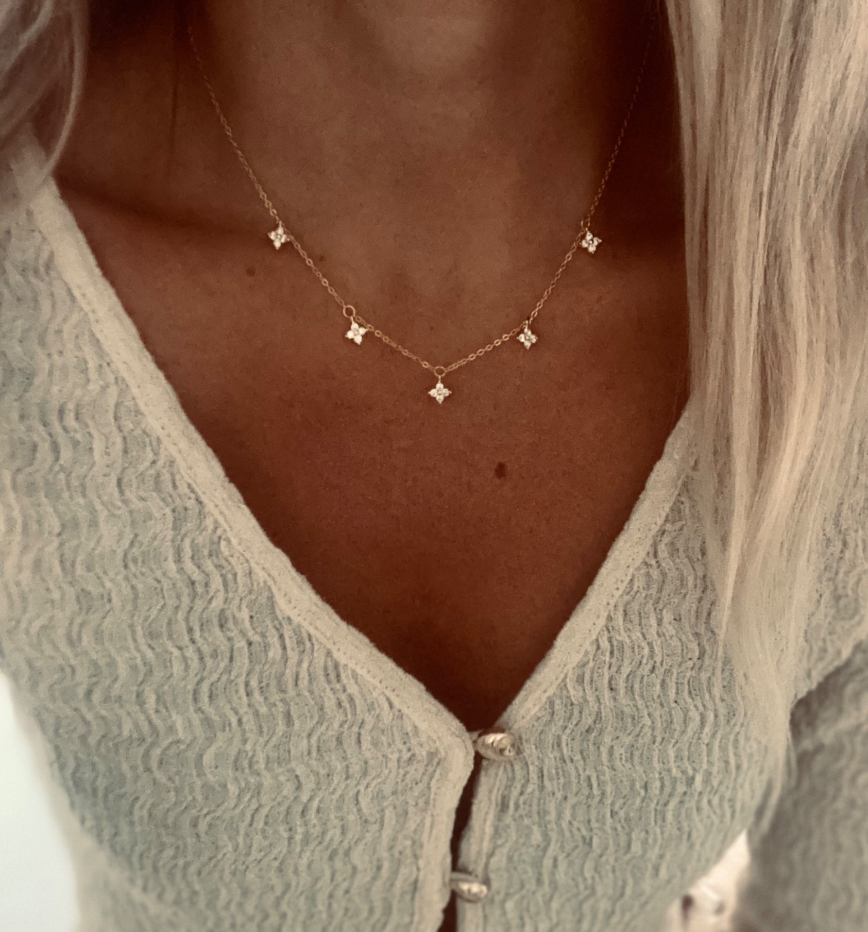 Collier chaine doré agrémenté de ses 5 breloques étoiles à strass argenté