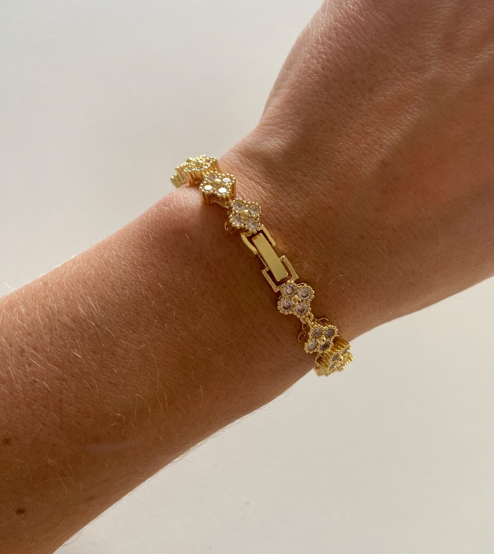 Bracelet petite fleurs doré orné de ses strass argenté