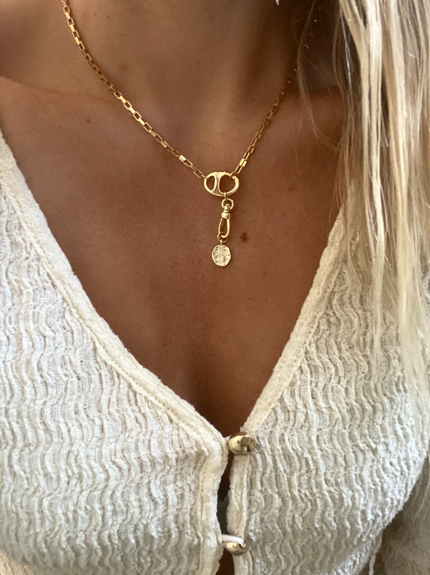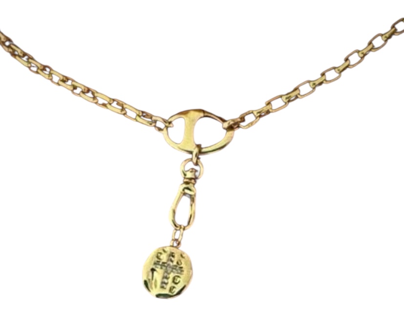 Collier chaine doré avec sa chaine pendentif grain de café et son médaillon croix avec strass