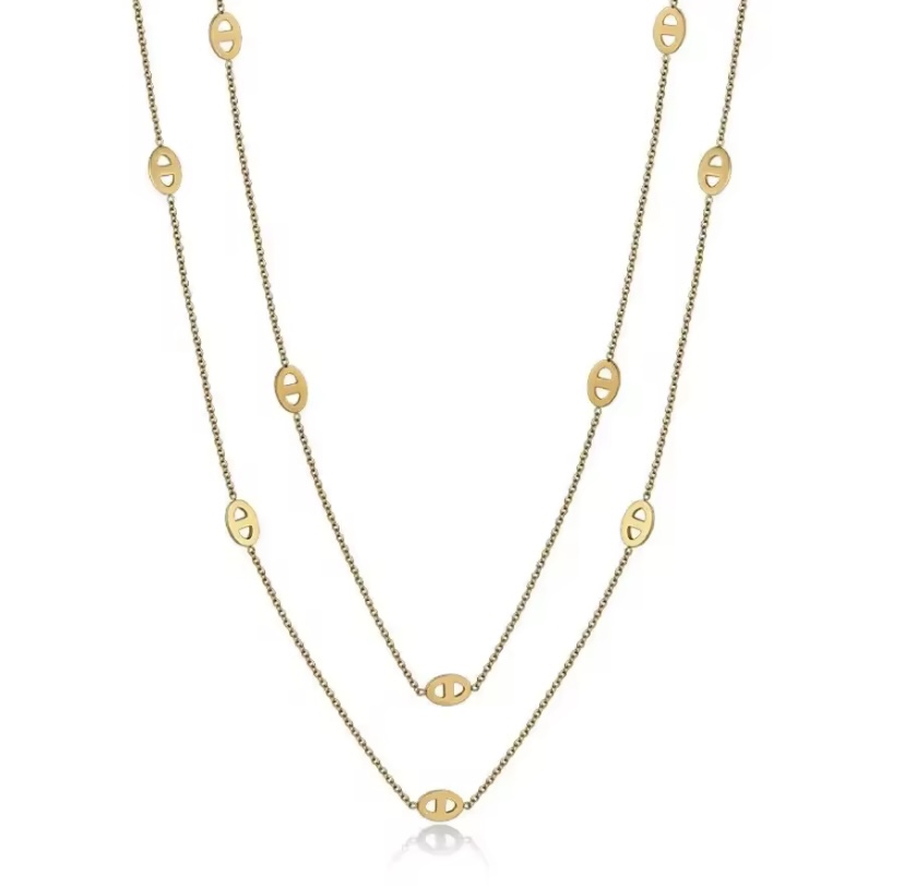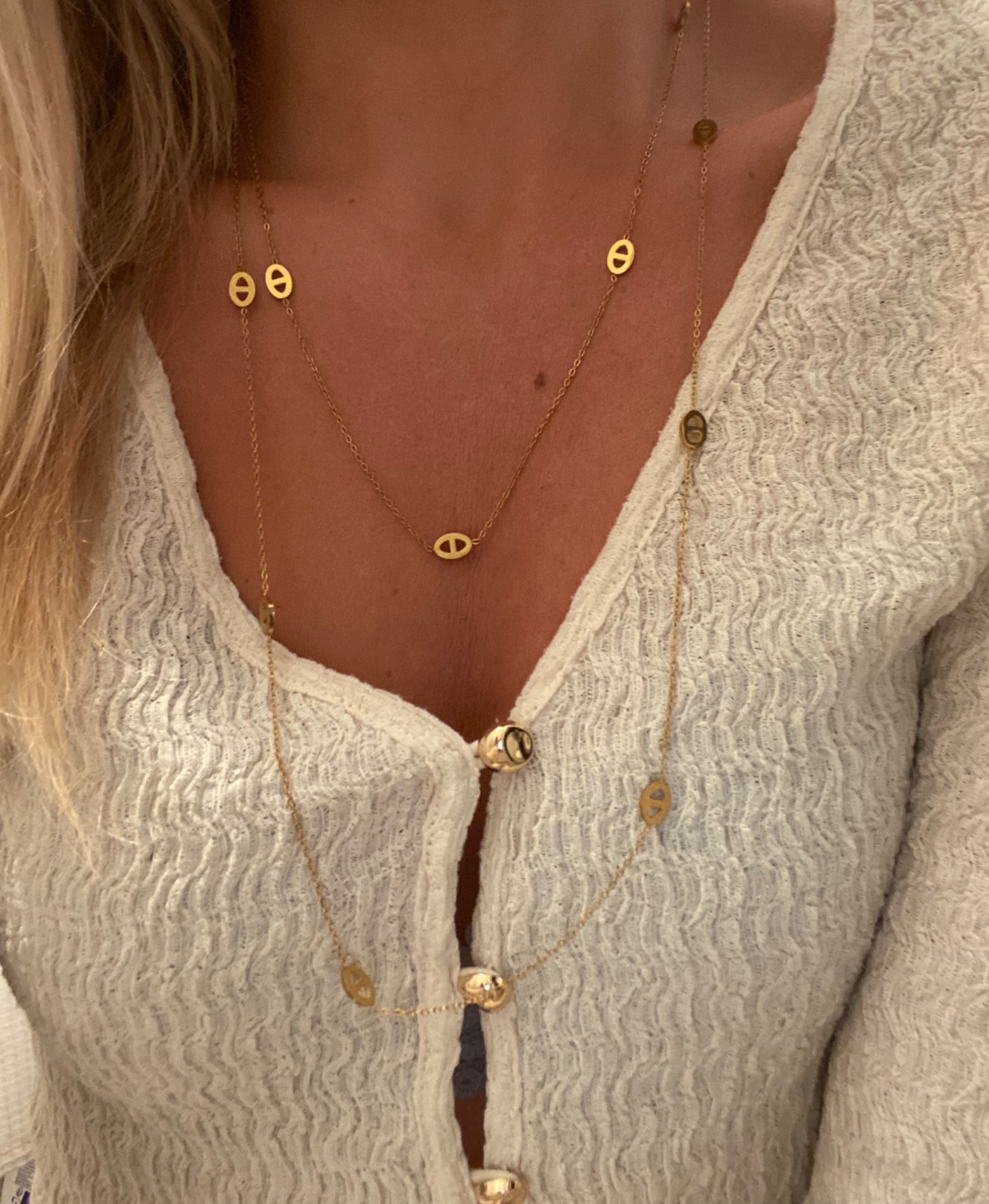 Collier sautoir avec sa chaine pendentif muni de ses petites mailles marine