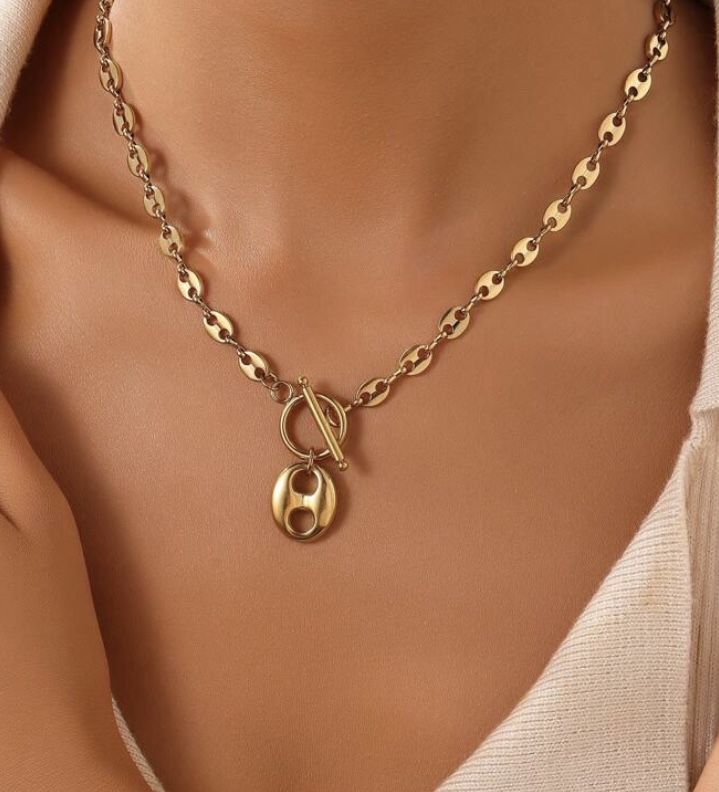 Collier doré avec sa chaine pendentif grain de café ainsi que sa breloque.