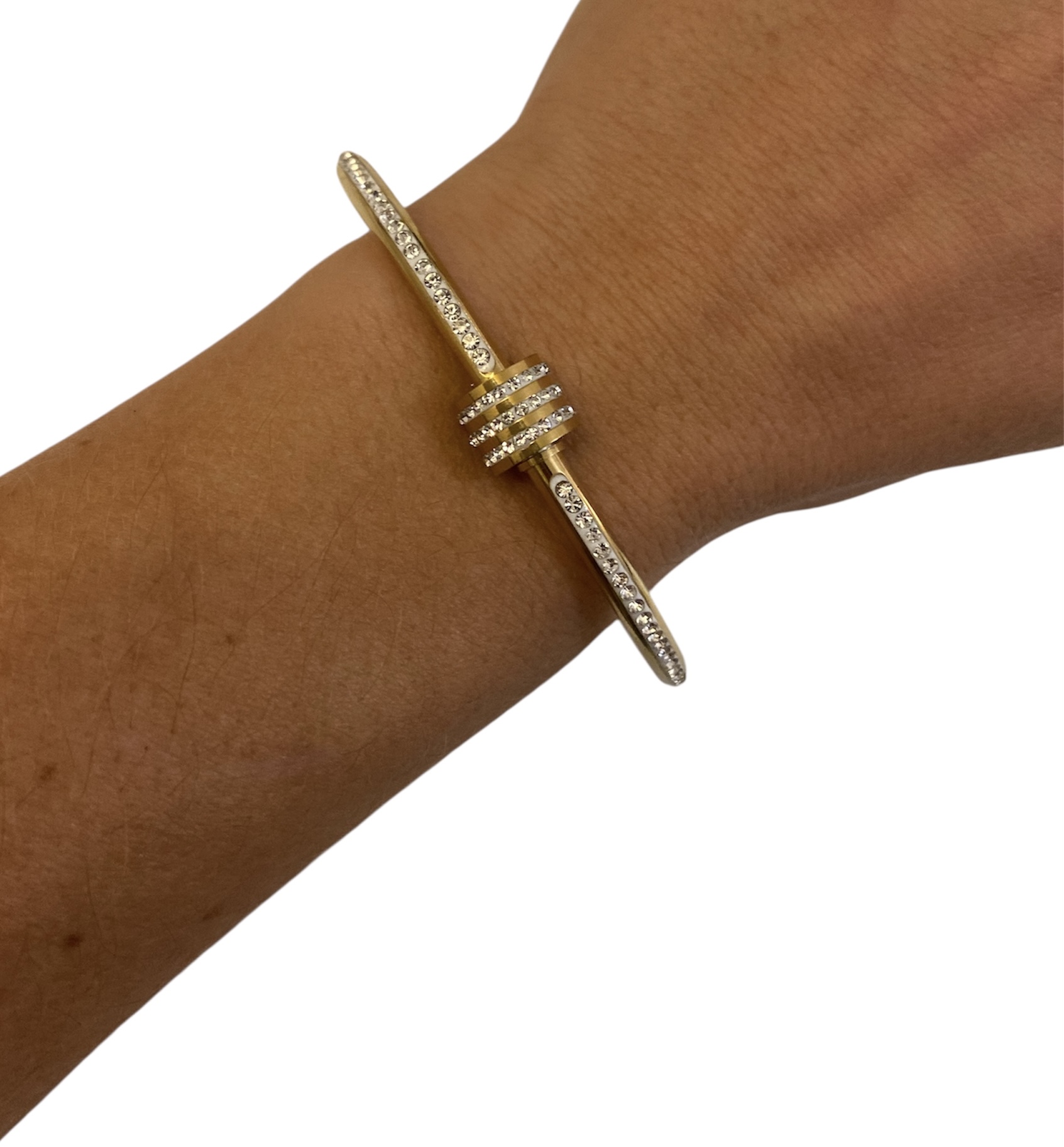 Bracelet doré orné de ses strass argenté qui se devisse et se visse pour l’ouverture ou la fermeture de celui-ci