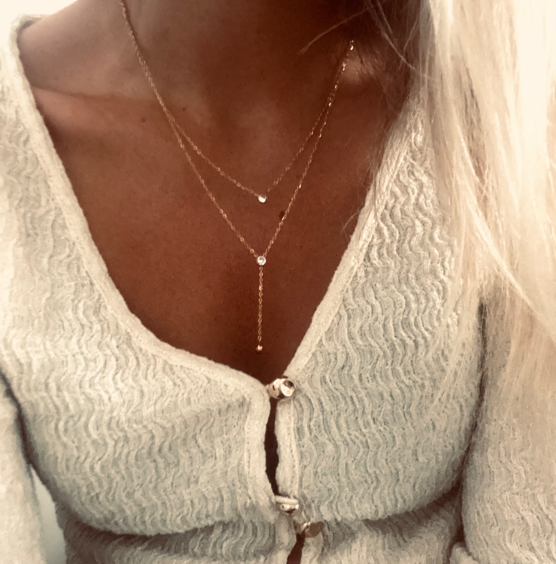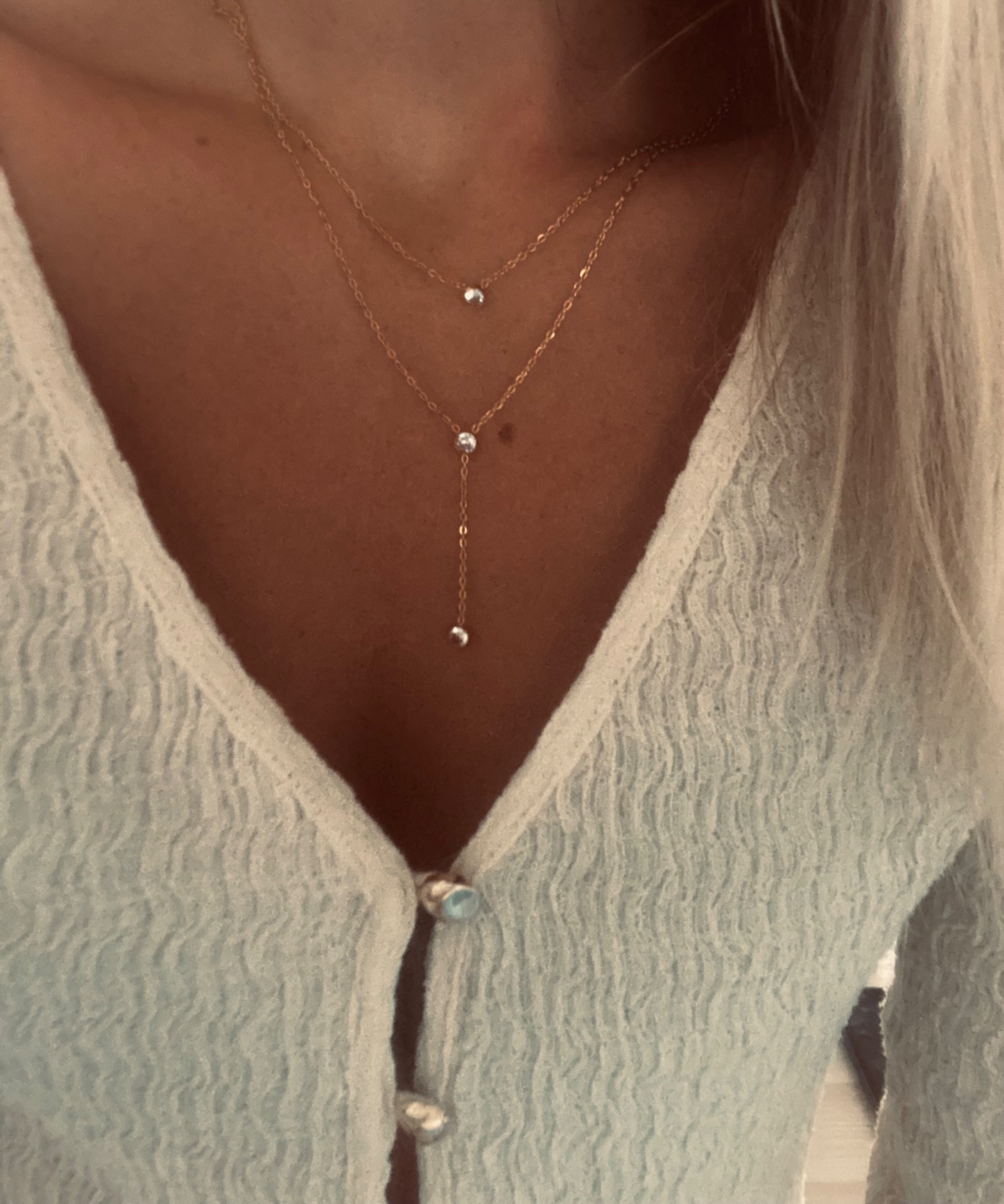 Collier chaine doré avec ses 3 pendentifs en strass argenté