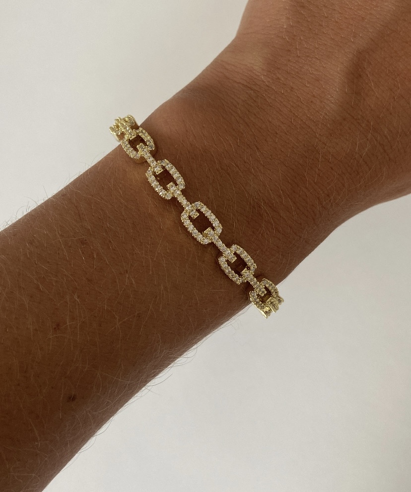 Bracelet doré orné de ses strass argenté ajustable